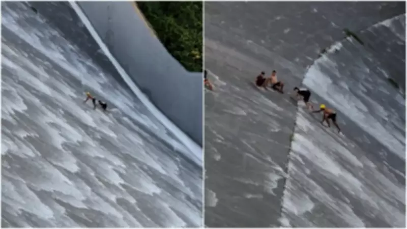 Um vídeo que circula nas redes sociais mostra jovens se arriscando de forma perigosa ao tomarem banho no lado mais inclinado da parede do sangradouro do Açude de Orós, localizado no interior do estado do Ceará. As imagens registram dois banhistas escalando a divisória do equipamento enquanto ele realiza a sangria da água, um procedimento de escoamento do reservatório. Posteriormente, a dupla se junta a outros amigos que estavam sentados em um ponto próximo, demonstrando total despreocupação com os riscos envolvidos.