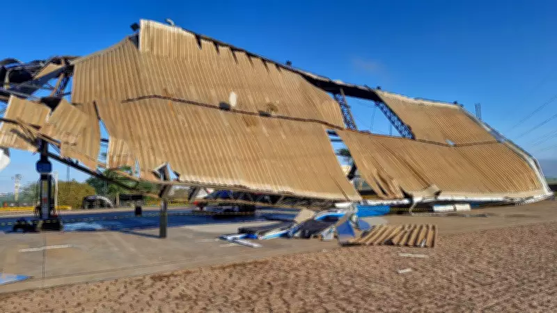 Estrutura de posto de combustível desaba durante temporal no noroeste paulista