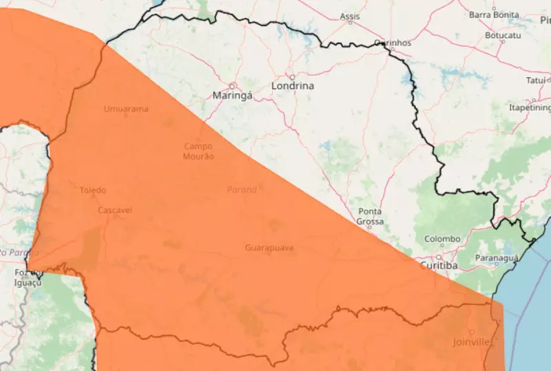 Outras cidades também tiveram registros significativos entre a madrugada e o início da manhã de sábado. Laranjeiras do Sul anotou 67,6 mm, Pinhão 54,2 mm, Mangueirinha 53,8 mm e General Carneiro 52,0 mm. Em Toledo, foram 45,2 mm, com 40,6 mm caindo na primeira hora do dia.