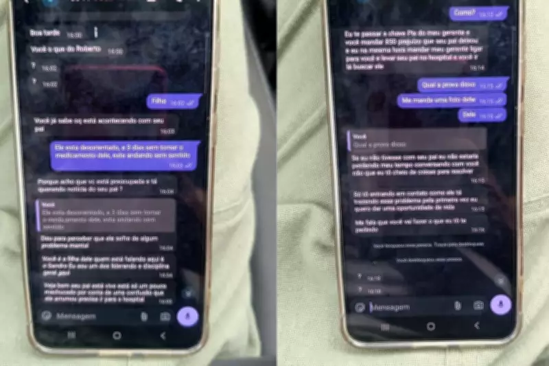 Foi justamente através das redes sociais que Patrícia tornou-se alvo de criminosos oportunistas. Um indivíduo que se identificou como Sandro entrou em contato com a jovem, alegando ser líder de um grupo que mantinha Roberto refém. O golpista afirmou que o pai de Patrícia estava machucado por ter "arrumado confusão" e exigiu o pagamento de R$ 850 via PIX como suposto ressarcimento por danos causados.