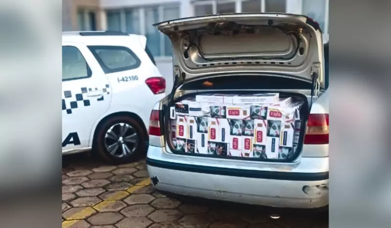 Quando localizaram o carro, a surpresa: o motorista, um homem de 46 anos, não estava transportando apenas alguns maços para consumo próprio. O porta-malas e o interior do veículo estavam abarrotados de cigarros de marcas estrangeiras, todos sem a devida documentação fiscal.