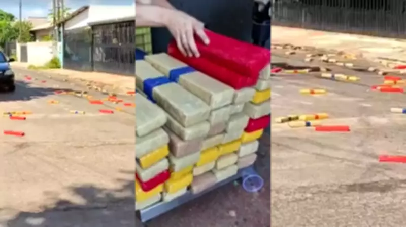 Uma cena inusitada e surpreendente ocorreu em Foz do Iguaçu, no Oeste do Paraná, quando um motorista, ao esquecer o porta-malas aberto, espalhou centenas de tabletes de maconha pelas ruas do bairro Portal. O incidente, filmado por moradores e que viralizou nas redes sociais, levou a Polícia Civil a uma apreensão massiva de aproximadamente quatro toneladas da droga e à descoberta de um depósito clandestino localizado ao lado da cadeia pública da cidade.