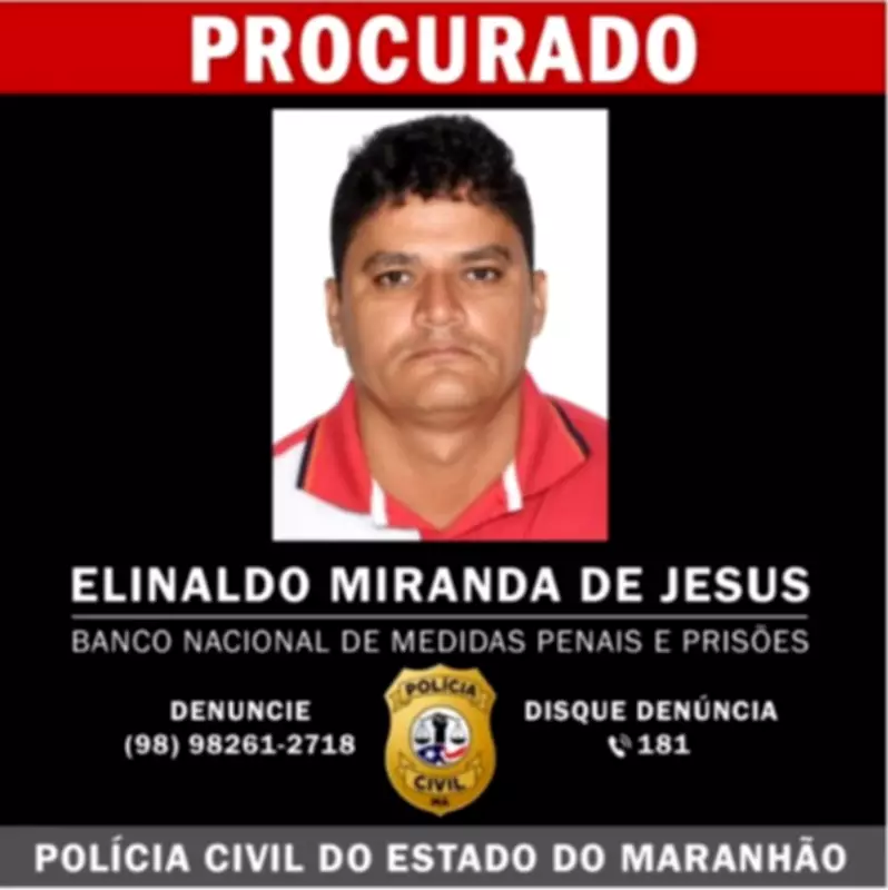 A Polícia Civil do Maranhão está empenhada em uma operação para localizar e prender Elinaldo Miranda de Jesus, homem condenado a 25 anos de prisão pelo crime de estupro de vulnerável na cidade de Vitorino Freire. As autoridades divulgam um cartaz com sua imagem e informações de contato, solicitando o auxílio da população para encontrar o foragido.