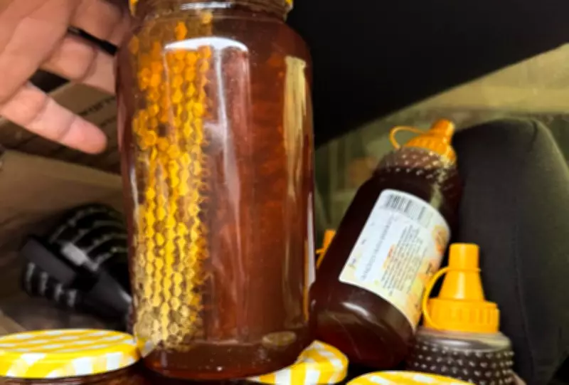 Durante a vistoria minuciosa, os agentes encontraram diversos recipientes contendo substância semelhante a mel, todos completamente desprovidos de rótulo ou qualquer identificação de origem. O material apreendido incluía: