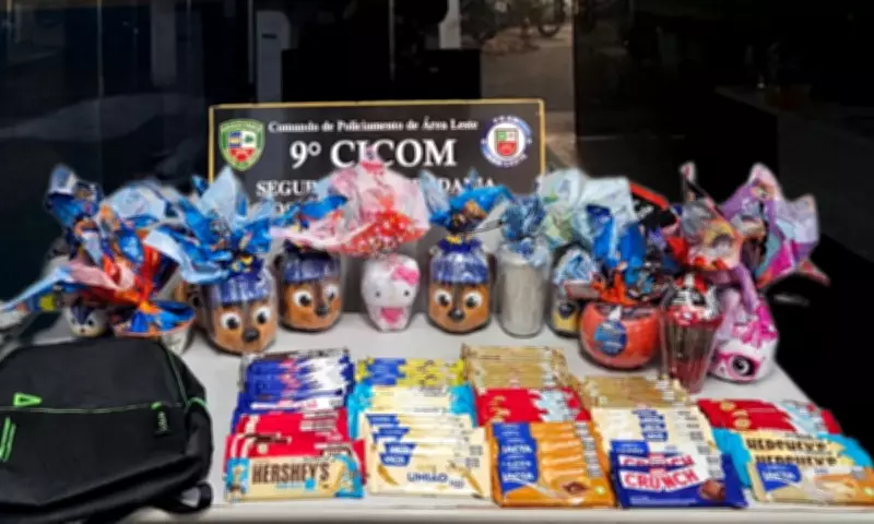 A adolescente de 14 anos foi interceptada logo após sair da loja, sendo encontrada com 13 ovos de Páscoa e 86 barras de chocolate, que estavam armazenados dentro de uma mochila e uma sacola. A equipe de segurança do shopping acionou a polícia, que já realizava patrulhamento na área, possibilitando a apreensão imediata.