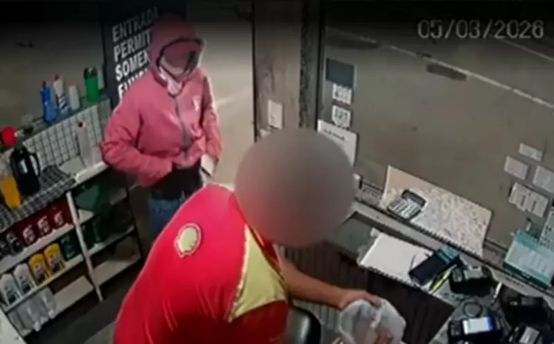Segundo relatos da Polícia Militar, o frentista do posto foi surpreendido por um indivíduo que simulava estar armado, exigindo todo o dinheiro disponível no caixa. Nas imagens de segurança, é possível observar o momento em que o assaltante chega ao local com o rosto coberto por uma camiseta, uma tática comum para evitar identificação.
