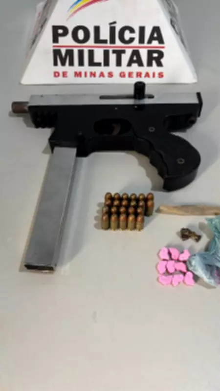 Homem é preso com submetralhadora e drogas ao desembarcar de ônibus em Rio Pardo de Minas