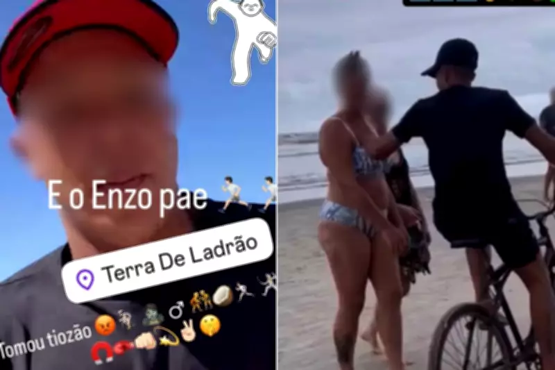 Um suspeito causou indignação ao publicar vídeos em redes sociais onde aparece cometendo roubos de correntinhas na orla de Praia Grande, no litoral de São Paulo. Nas imagens, obtidas pelo g1 nesta sexta-feira (17), o indivíduo brinca com a situação, adicionando textos provocativos como "país onde o crime compensa" e "terra de ladrão" às postagens. Até o momento, ele não foi localizado, e a Polícia Civil está investigando o caso para apurar os fatos e identificar os responsáveis.