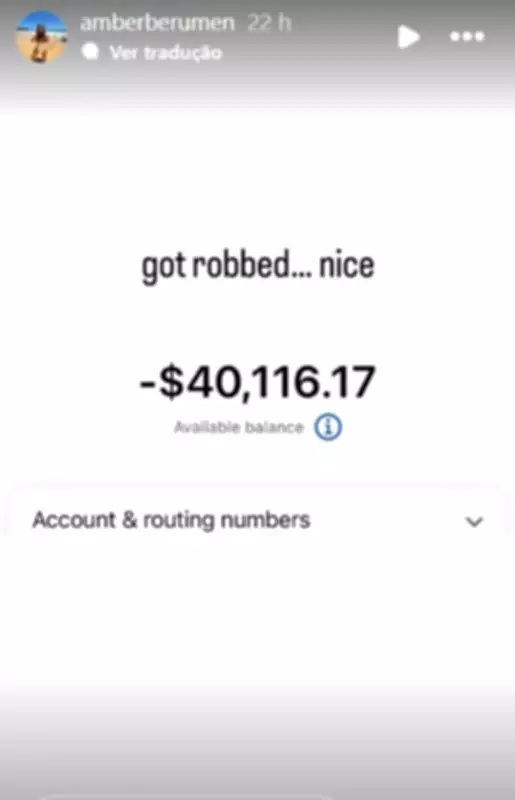 O caso, no entanto, não terminou com o simples furto do celular. Os criminosos acessaram as contas bancárias da vítima e realizaram saques que totalizaram uma quantia superior a 40 mil dólares, deixando a conta completamente negativada. Além disso, os bandidos invadiram o email pessoal de Amber, trocaram a senha de acesso e alteraram o idioma das configurações para português, dificultando ainda mais a recuperação dos dados pela turista.