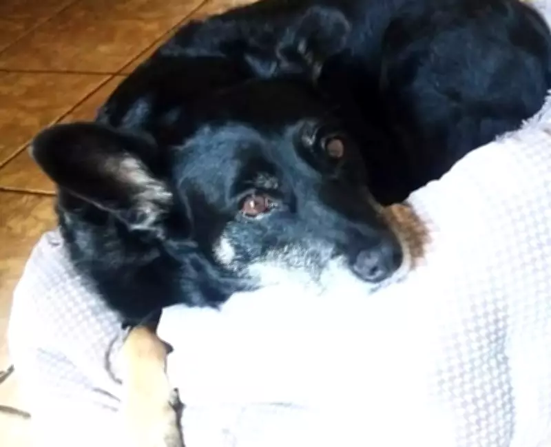 A vira-lata de cor preta e aproximadamente 20 kg tem problemas de saúde graves. Belinha necessita de medicação diária para tratar um tumor na pata e um problema na coluna, condições que exigem acompanhamento veterinário constante. Na última quarta-feira (25), ela havia passado por atendimento médico para o tumor.