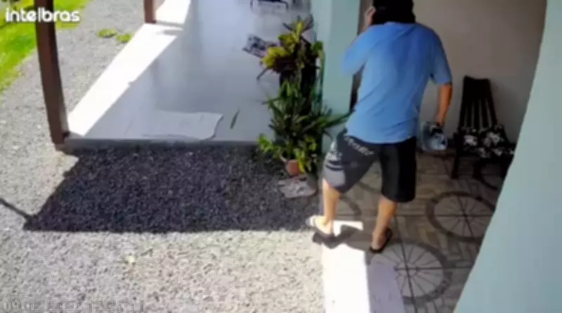 O momento crítico da fuga foi registrado por uma câmera de monitoramento instalada na parte externa da residência. As imagens mostram claramente a vítima correndo para fora do imóvel, seguida de perto por um homem vestido inteiramente de preto e utilizando uma balaclava para esconder o rosto.