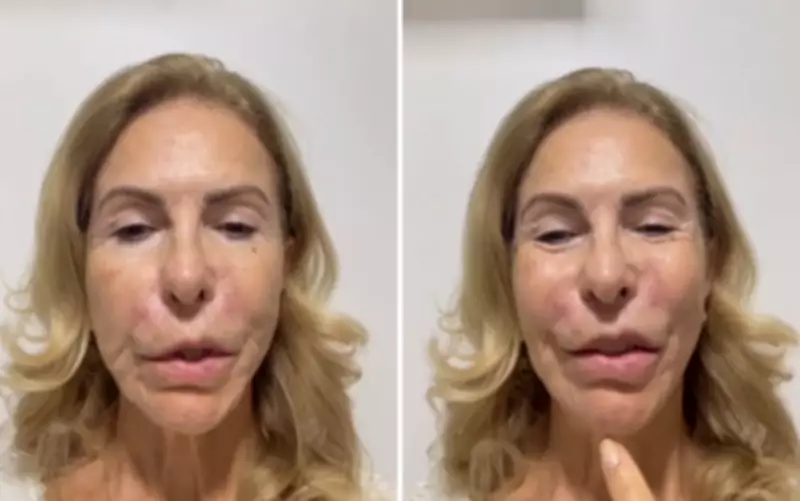 Após a intervenção, a psicóloga começou a apresentar alterações faciais inéditas, incluindo: