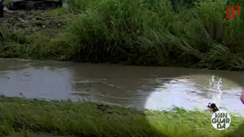 Nas imagens capturadas pelo repórter cinematográfico André Bias, o cachorrinho aparece sendo levado pela correnteza do córrego, que transbordou após chuvas intensas na região. Felizmente, o animal conseguiu se salvar, saindo da água e indo para uma área de mato, onde se chacoalhou para se secar. O momento de tensão foi registrado ao final da participação da repórter, destacando os riscos enfrentados por animais durante eventos climáticos extremos.