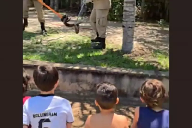 Durante a operação, uma das mães registrou em vídeo o momento em que, após as explicações dos militares, uma criança fez um pedido que surpreendeu a todos. "Tio, a gente pode fazer carinho na cobra?", questionou o pequeno curioso. Antes mesmo que os bombeiros pudessem responder, a mãe prontamente negou o pedido, gerando risadas entre os profissionais que atuavam no local.