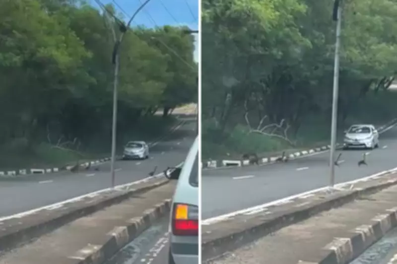 Uma cena inusitada e encantadora parou o trânsito em Presidente Prudente, no interior de São Paulo, nesta quarta-feira (11). Uma família de quatis atravessou calmamente a Avenida Juscelino Kubitschek, obrigando motoristas em ambos os sentidos a frearem seus veículos para garantir a segurança dos animais. O episódio, que durou menos de um minuto por volta do meio-dia, foi capturado em vídeo por uma comerciante local, destacando um momento de pausa na correria urbana.
