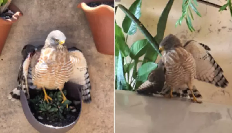 Gavião ferido com asa quebrada é resgatado em garagem de residência no interior de São Paulo