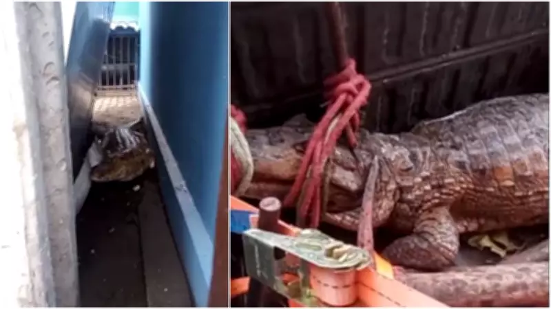 Jacaré de 1,5 metro é resgatado em posto de combustível na Grande Fortaleza