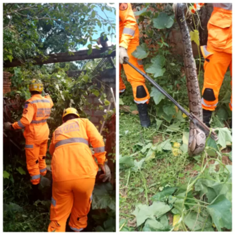 Bombeiros realizam resgate de jiboia em quintal residencial no Norte de Minas