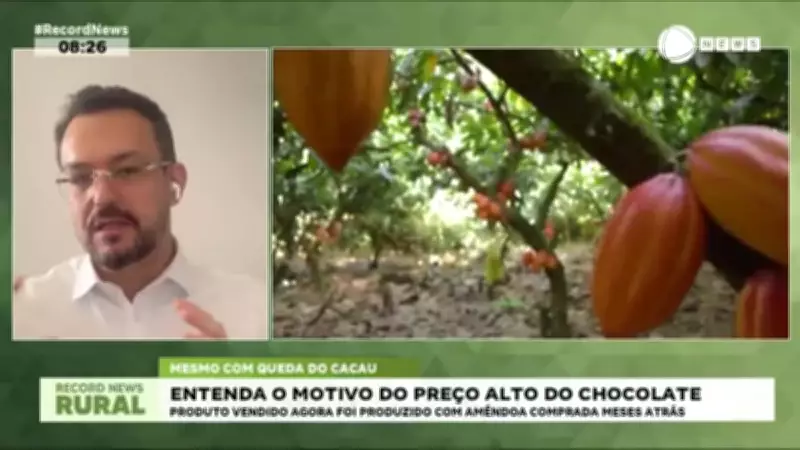 Mesmo com a queda do preço do cacau nas bolsas internacionais, o custo do chocolate nos supermercados permanece elevado. Um especialista do setor esclarece que o produto vendido atualmente foi produzido com amêndoas compradas meses atrás, o que justifica a disparidade nos valores.