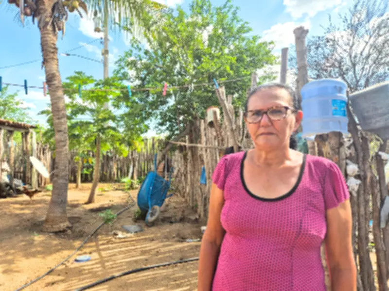 Maria Luciene Moreira, de 58 anos, descreve a realidade enfrentada pela família e vizinhos: "Água aqui é muito raro, escasso, difícil". Sem uma fonte própria, dependem de água enviada pela prefeitura em carros-pipa e de uma adutora que abastece a região. Para consumo, compram água mineral na cidade, gastando cerca de R$ 100 mensais. A renda familiar vem de duas aposentadorias e do trabalho agrícola do filho Sidnei. Luciene relata que a perfuração do poço foi uma tentativa de melhorar o abastecimento, mas resultou na surpresa do líquido escuro.