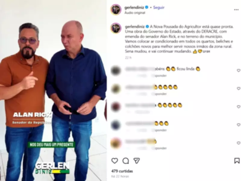 "Em claro desrespeito às normas e orientações de segurança, o prefeito Gerlen Diniz e o senador Alan Rick invadiram o canteiro de obras da Pousada do Agricultor, sem devida autorização, para gravar vídeos voltados a promoção eleitoral, visando ao pleito de 2026", afirmou a nota.
