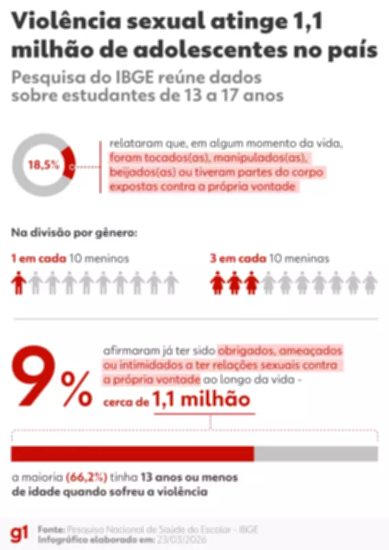 A Pesquisa Nacional de Saúde do Escolar (PeNSE) 2024, divulgada na última quarta-feira (25), revela um cenário profundamente preocupante sobre a realidade das adolescentes brasileiras. O estudo, realizado pelo Instituto Brasileiro de Geografia e Estatística (IBGE) em parceria com os Ministérios da Saúde e da Educação, traça um diagnóstico abrangente de mais de 12,3 milhões de jovens entre 13 e 17 anos das redes pública e privada de todo o país.