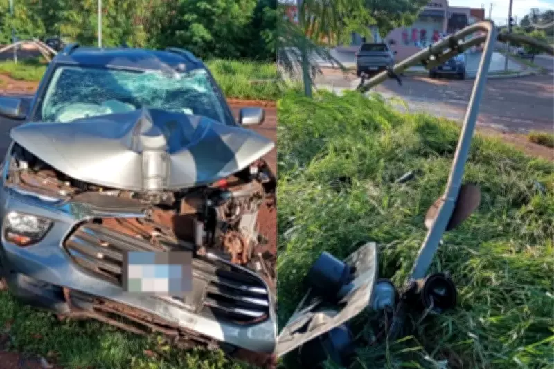 Acidente derruba semáforo em Campo Grande após motorista perder controle de caminhonete