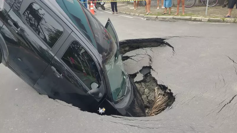 Um incidente preocupante ocorreu na manhã deste domingo (25) em Resende, no estado do Rio de Janeiro. Parte do asfalto de um trecho da Avenida Juscelino Kubitschek, localizada no bairro Itapuca, cedeu completamente, resultando na queda de um veículo em uma cratera de proporções consideráveis.