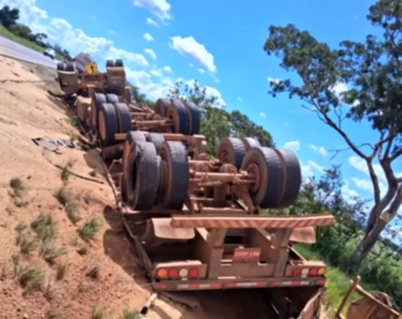Caminhão com soja tomba na MGC-452 após desviar de ultrapassagem irregular