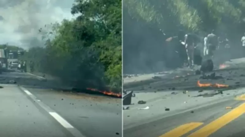 Colisão entre carro e caminhão provoca explosão e incêndio na BR-101 em Aracruz