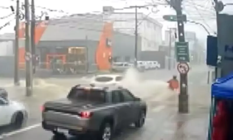 Um motociclista foi arrastado por uma enxurrada durante fortes chuvas que atingiram a cidade de Vitória da Conquista, localizada no sudoeste da Bahia, nesta quinta-feira, dia 5. O incidente ocorreu na Avenida São Geraldo, uma das vias mais movimentadas da cidade, situada no bairro do Alto Maron.