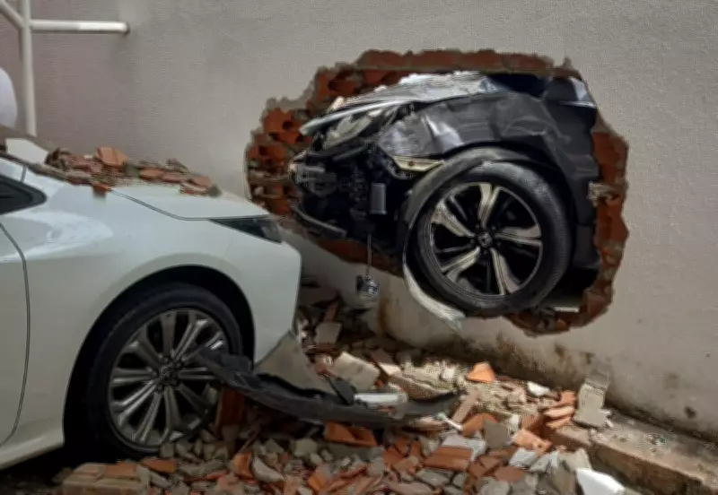 De acordo com informações da PM, o condutor do carro inicialmente bateu no motociclista e, em seguida, ao tentar escapar do local, perdeu o controle do veículo e atingiu o muro do condomínio. Vídeos registrados por testemunhas mostram que o impacto foi tão forte que o carro atravessou e destruiu parcialmente a estrutura, além de atingir um outro veículo que estava estacionado dentro da propriedade. A cena deixou marcas visíveis de destruição e alertou moradores da região sobre os riscos da direção perigosa.