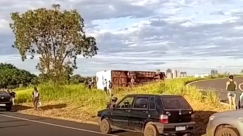 Um grave acidente de trânsito mobilizou as equipes do Corpo de Bombeiros na tarde deste sábado (14) na rodovia MGC-455, em Uberlândia. Um ônibus que transportava trabalhadores de uma granja tombou próximo a uma curva, no sentido Miraporanga-Uberlândia, resultando em ferimentos para três pessoas, conforme informações preliminares das autoridades.