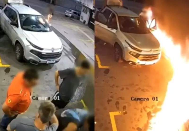 Nas imagens de segurança, é possível observar o homem se abaixando próximo a um veículo estacionado e, em seguida, as chamas se espalhando rapidamente pelo ambiente. O fogo atingiu áreas próximas às bombas de combustível e também veículos que estavam sendo abastecidos naquele momento, aumentando significativamente o perigo de uma explosão.
