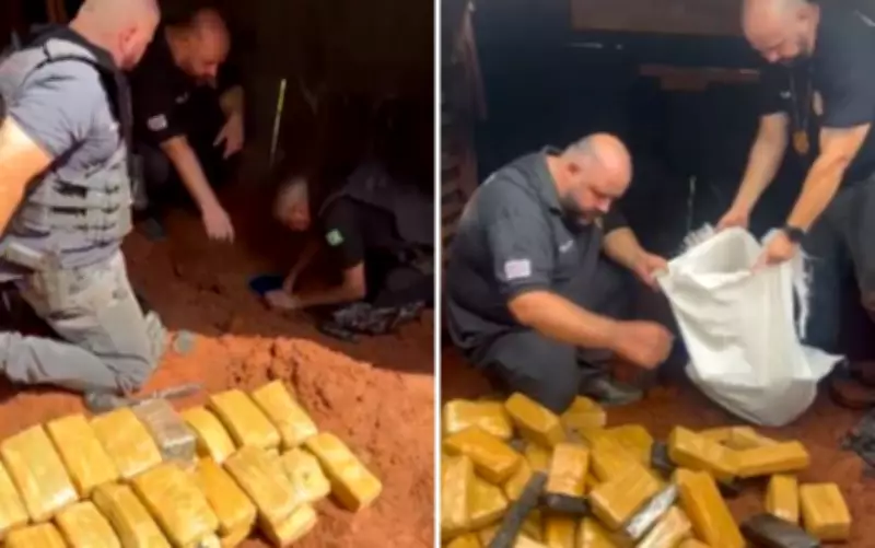 Durante a busca, os policiais encontraram 82 tijolos de maconha guardados dentro de tambores que estavam cuidadosamente enterrados no galinheiro. Além da droga, foram apreendidos frascos de lança-perfume e uma moto furtada, indicando conexões com outros crimes. O delegado explicou que a chácara não era usada para venda a varejo, mas sim como centro de distribuição para outros traficantes, reforçando a escala do esquema.