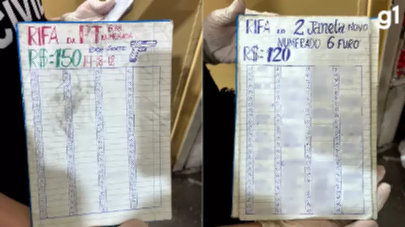 Durante as buscas, a PF apreendeu documentos que expõem um esquema criminoso envolvendo rifas de armas de fogo. As anotações em papel indicavam valores entre R$ 120 e R$ 150 por número, evidenciando a sofisticação das atividades ilícitas.