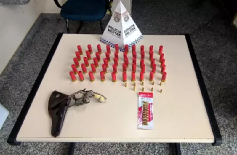 Durante a intervenção, o homem informou voluntariamente aos policiais que possuía uma arma no imóvel. Diante dessa declaração, os agentes procederam com uma busca minuciosa, resultando na apreensão de um revólver e um total de 69 munições.