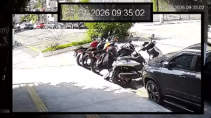 As imagens foram registradas por câmeras de segurança por volta das 9h30 de uma terça-feira comum. No vídeo, o suspeito aparece circulando calmamente pela rua até selecionar as motocicletas estacionadas como alvo. Em questão de segundos, ele encosta ao lado dos veículos, levanta o banco, quebra a trava de segurança e remove o módulo eletrônico antes de prosseguir para a próxima moto com impressionante destreza.