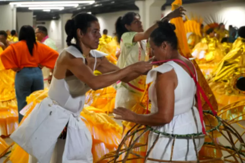 "Eu já tento regular o sono na semana do desfile. Hoje, tomei café, energético, mas também me alimentei leve. Não dá para pesar, porque a fantasia já pesa", relatou Bruna. Com brilho no rosto e maquiagem reforçada para resistir ao calor do amanhecer, ela afirmou que o cansaço desaparece quando pisa na avenida.