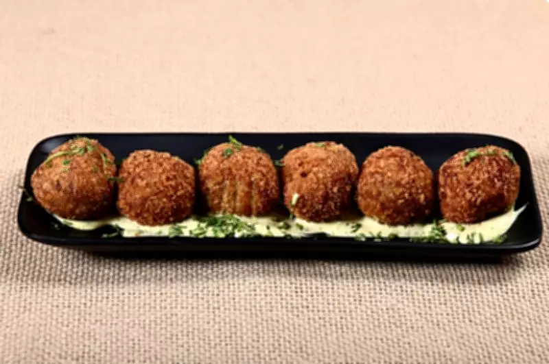 - Armazém Du Chefe: Bolinho de cupim com tuile de jambu, acompanhado de maionese de chicória e mostarda.