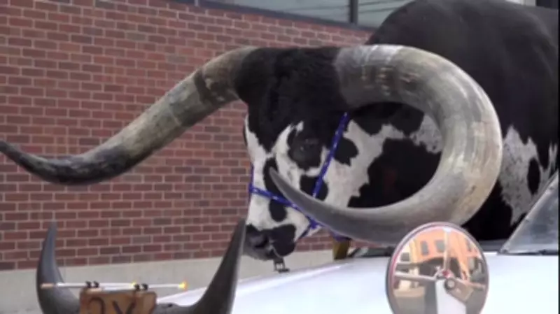 Motorista corta teto de carro para transportar touro gigante e surpreende polícia nos EUA