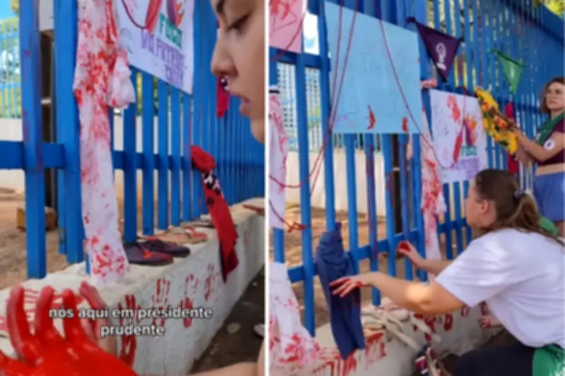 Um vídeo publicado pelo próprio grupo mostra parte da manifestação realizada em frente ao Fórum. Nas imagens, as ativistas aparecem com as mãos sujas de tinta vermelha, fazendo marcações no portão do prédio público. Durante o ato, também foram colocadas peças de roupas, calçados e cartazes como forma de protesto simbólico.