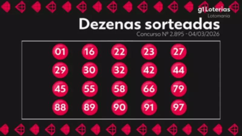 Os números sorteados no concurso 2895 da Lotomania foram: 1, 16, 22, 23, 27, 29, 30, 32, 42, 44, 45, 55, 58, 66, 79, 88, 89, 90, 91 e 97.