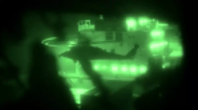 A tensão escalou significativamente após as forças dos Estados Unidos anunciarem a apreensão do navio cargueiro iraniano M/V Touska, que tentou furar o bloqueio naval imposto pela Marinha americana há uma semana no Estreito de Ormuz. Imagens divulgadas pelos militares mostraram fuzileiros navais descendo de rapel até a embarcação.