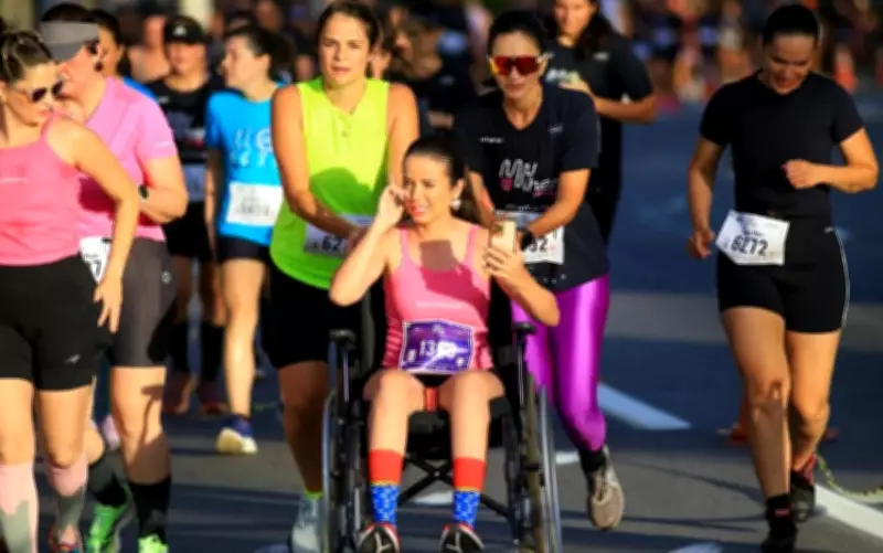 Goiana tetraplégica participa de corrida de rua em Goiânia com apoio feminino