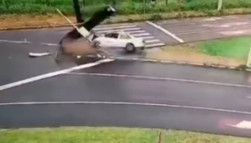 Um motorista provocou um grave acidente de trânsito na rotatória do Cristo, em São Carlos, interior de São Paulo, no último domingo (5). Após colidir violentamente, o condutor derrubou um semáforo e fugiu do local, deixando para trás um veículo bastante danificado. O caso foi registrado pela polícia como fuga de local de acidente.